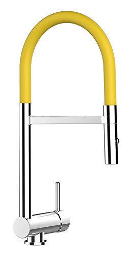 Rubinetto miscelatore lavello cucina abbattibile 6 cm canna GIALLA orientabile/girevole e doccetta 2 getti estraibile