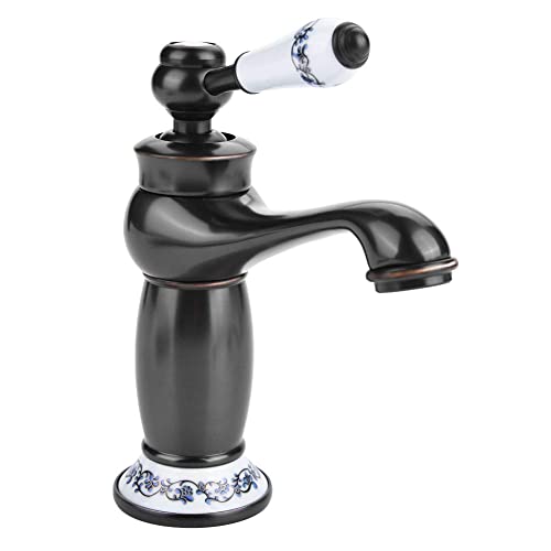 Rubinetto Miscelatore Monocomando in Ceramica Floreale Vintage Rubinetto Acqua Calda Fredda in Bronzo per Lavabo Bagno Decorazione Della Casa(#4)