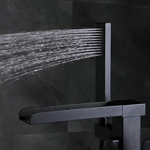 Rubinetto miscelatore per vasca da bagno nero opaco autoportante monocomando a cascata per vasca da bagno con spruzzatore per doccia portatile a pavimento
