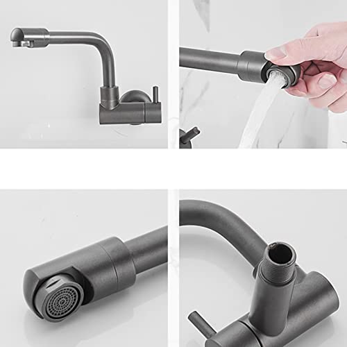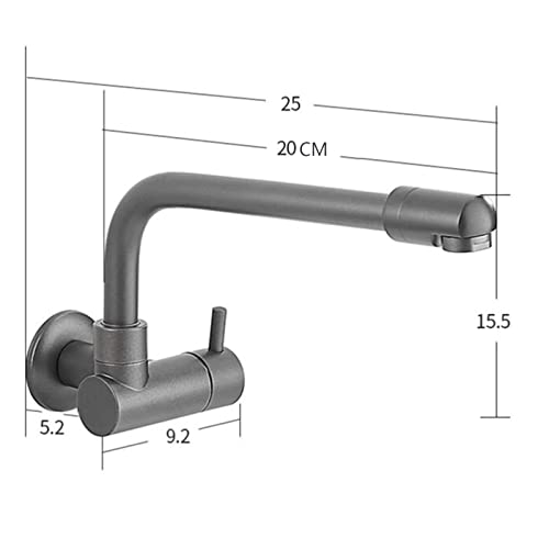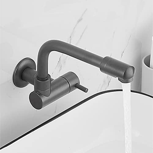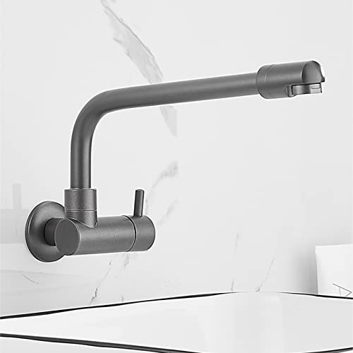 Rubinetto da Muro Cucina Acqua Fredda Rubinetto Per Lavello Grigio Ottone Girevole Foro Singolo Rubinetto Per Piscina Mop-20 Cm