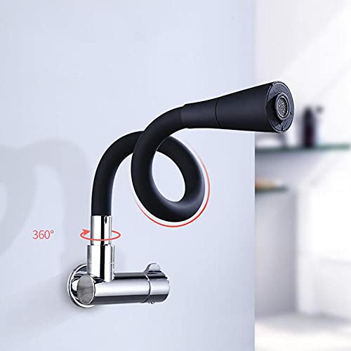 Rubinetto a Muro Solo Acqua Fredda Foro Singolo Girevole Libera Risciacquo Ottone Durevole Miscelatore Lavello Cucina-Nero -A