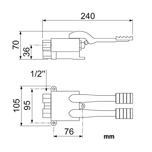 Il doppio pedale permette di mescolare le due acque, calda e fredda alla stessa volta.Il rubinetto è dotato di raccordi di ingresso e uscita femmina da ½".