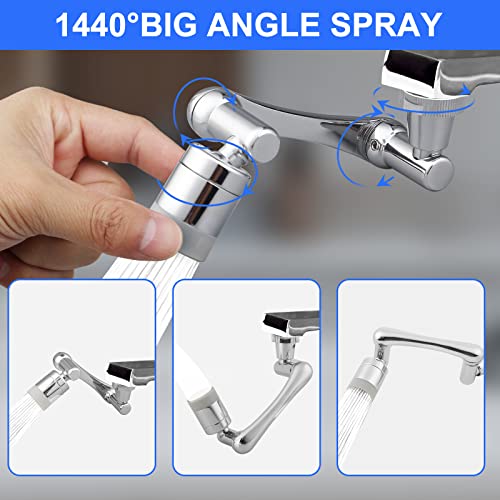 【Rubinetto girevole innovativo】 L'aeratore del rubinetto è progettato con braccio metallico mobile, può essere utilizzato con una rotazione di 1440°, gli accessori del rubinetto regolabili e girevoli sono ideali per la pulizia e il risparmio idrico.L'intera gamma di movimenti consente di sciacquare facilmente il lavandino.