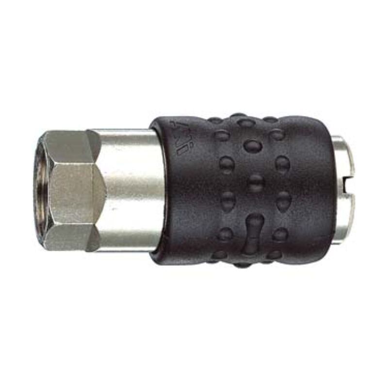 Attacco 3/8f art.17/d cappellotto antiurto nero in nylon - corpo in ottone nichelato - impiego universale con ogni tipo di innesto Categoria merceologica: Compressori e accessori - Elettroutensili - Rubinetti per compressori