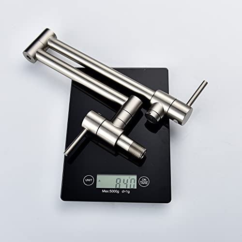 Convenienza e facilità d'uso: questo rubinetto per fornello da cucina a parete è progettato per riempire la pentola in modo rapido e semplice. Il braccio rotante da 19,7 pollici può aggiungere acqua a 3-4 pentole sul bruciatore e il beccuccio oscillante a doppio snodo può ruotare di 360 gradi. È facile da usare e occupa poco spazio.