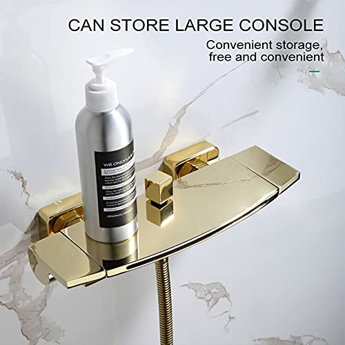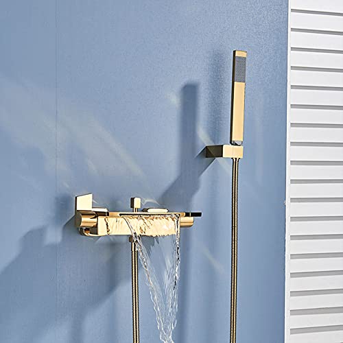 GX Rubinetto Vasca Bagno Cascata con Doccetta, Ottone Rubinetto Miscelatore Vasca A Parete con Supporto E Tubo da 150Cm, Sistema Doccia, Oro