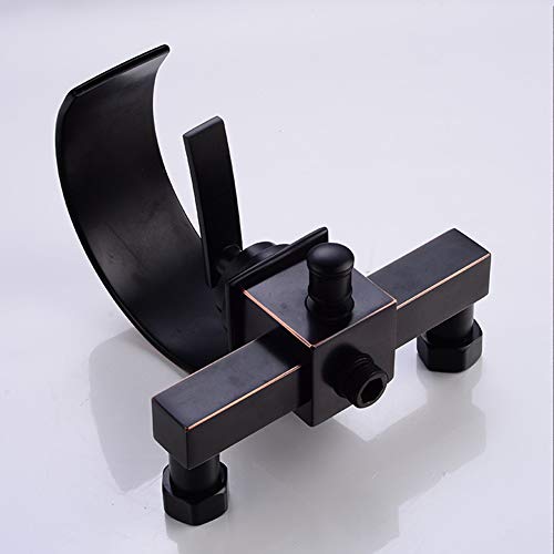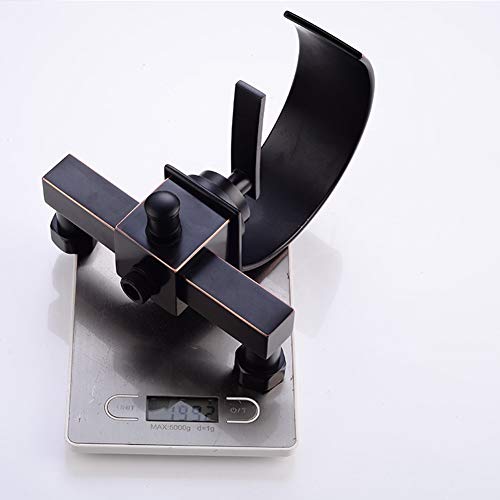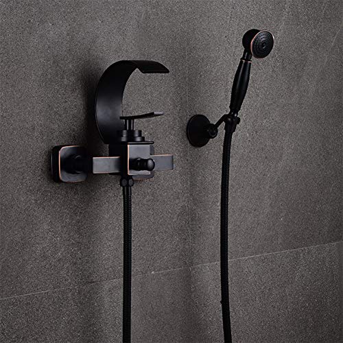 Rubinetto Vasca Bagno Cascata, Miscelatore Esterno Per Vasca/doccia 2 Manopole, Con Doccetta & Tubo Flessibile 1.5M & Supporto, Ottone Moderno, Supporto a Parete Per Vasca, Nero
