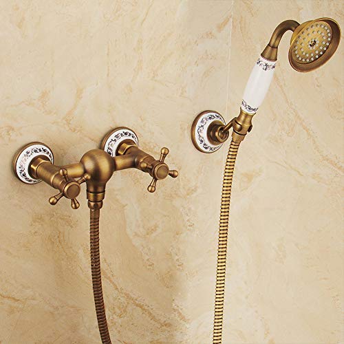 Rubinetto Vasca Bagno, Miscelatore 2 Manopole Esterno Per Vasca/doccia, Con Doccetta E Tubo Flessibile Doccia Da 1.5M Vasca Da Bagno Miscelatore a Parete, Materiale In Ottone, Doro