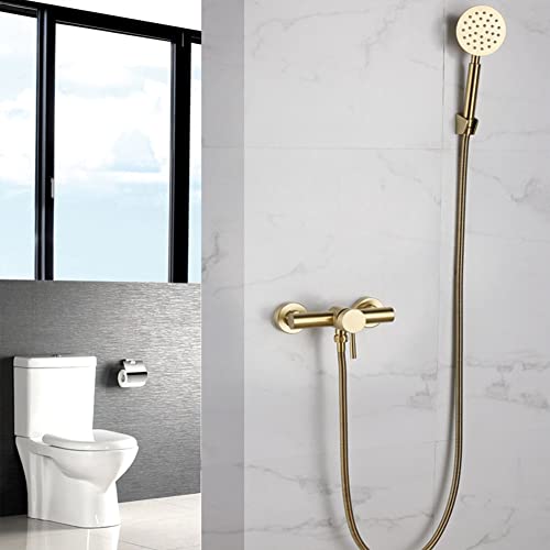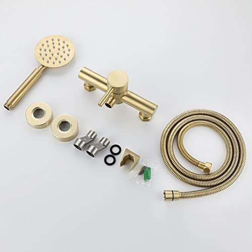 Rubinetto Per Vasca Da Bagno Monocomando Esterno, Acciaio Inox Rubinetto Miscelatore Bagno Vasca Per Doccia A Parete Con Doccetta E Flessibile Doccia Da 1,5 M, Spazzolato Oro