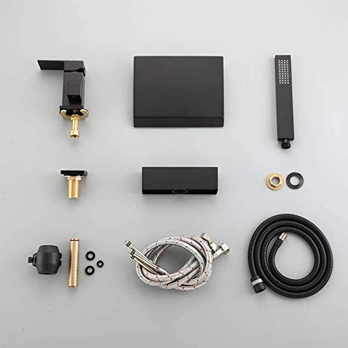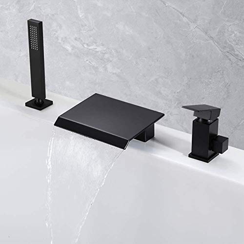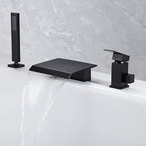 Rubinetto per vasca a cascata nero, rubinetto per vasca con doccetta, 3 fori monocomando per vasca da bagno con montaggio su ponte, miscelatore per vasca