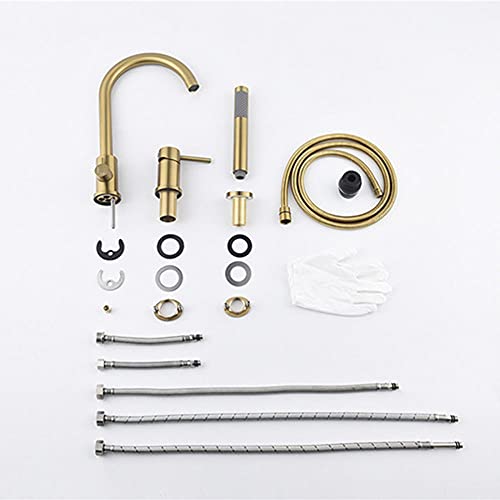 Rubinetto per Vasca con Doccetta Estraibile e Tubo Retraibile 3 Fori Manico Singolo Miscelatore per Bordo Vasca da Bagno Gooseck Rubinetteria Bagno-Spazzolato Oro-Cromo
