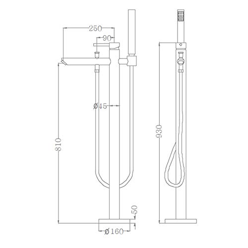 Rubinetto per Vasca Freestanding da Bagno Chrome Miscelatore Bagno Doppia Maniglia Miscelatore Doccia Vasca-Cromo
