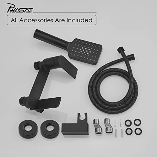 Rubinetto per Vasca Nero Muro con Doccetta a 3 Funzioni Rubinetto Miscelatore Parete in Ottone PHASAT BB03