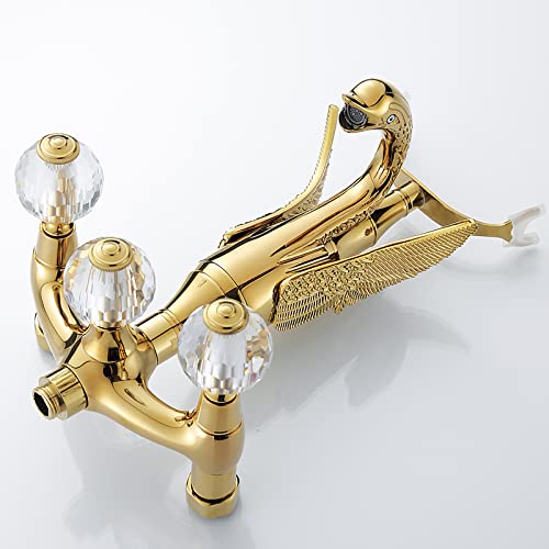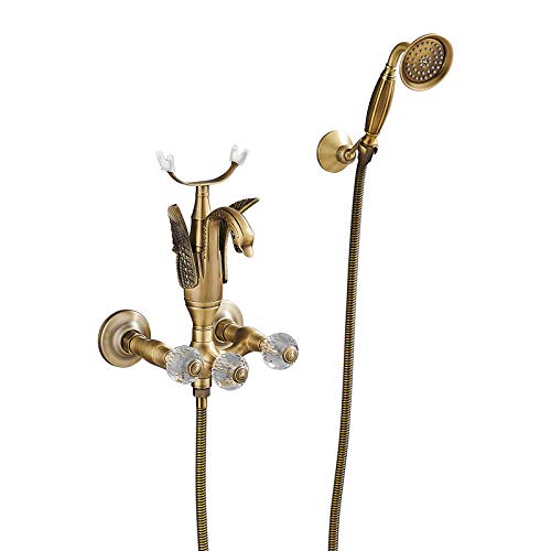 Rubinetto per Vasca Ottone Cigno Miscelatore Bagno Stile Telefonico Wall Mount Miscelatore Vasca da Bagno Manico in Cristallo Rubinetto per Doccia con Doccetta,Antique
