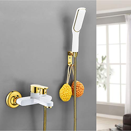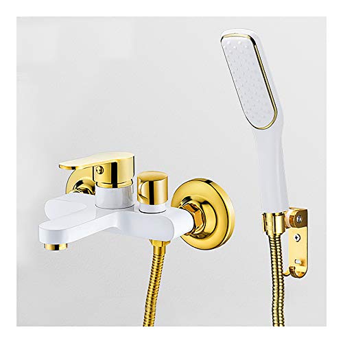 Rubinetto per Vasca Ottone Miscelatore Bagno con Gancio Wall Mount Miscelatore Vasca da Bagno Manico Singolo Rubinetto per Doccia con Doccetta,Bianca