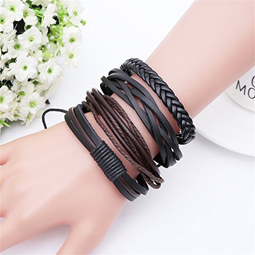 RUBOBUC Braccialetti di Cuoio 8-12Pcs per Gli Uomini Donne Braccialetti in Rilievo di Legno Polsini Intrecciati