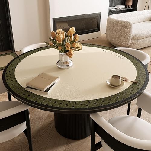 Ruby Lil Copritavolo Rotondo Impermeabile A Prova Di Olio, Imbottiture Da Tavolo Di Protezione Antiscottatura Tovaglietta in Pelle PU Senza Lavaggio Per Tavolino Da Caffè Domestico,C,120cm(47in)