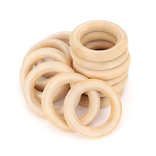 RUBY - 20 Pezzi Anelli in Legno Naturale, Anello in Legno, Cerchi in Legno per Artigianato, Creazione Gioielli, Connettori Pendenti ad Anello (Ø 45mm)