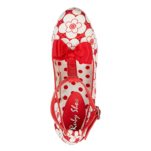 Ruby Shoo Kiara - Scarpa con piattaforma a T con fibbia, colore: Rosso rosso rosso con fiocco decorativo, Rosso (Rosso rosso), 38 EU