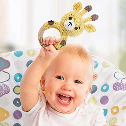 RUBY Sonaglio Neonato Intrecciata Con Corda Di Cotone,Baby Rattle Neonato Sonagli,Sonagli Legno Bambini,Giochini Dentizione Neonati,Knit Baby Rattle Con Massaggiagengive In Legno(Giraffa gialla)