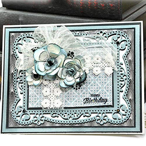 Ruby569y - Fustelle in metallo, rettangolari, con cornice a fiori, per fai da te, scrapbooking, biglietti di auguri, colore: argento