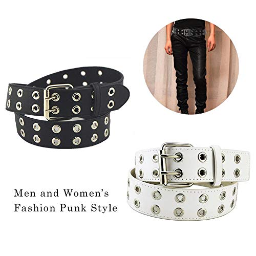 Rubyu Cintura con borchie a doppio foro in pelle per uomo e donna, cintura in pelle, cintura per jeans, cintura in pelle liscia, diverse lunghezze
