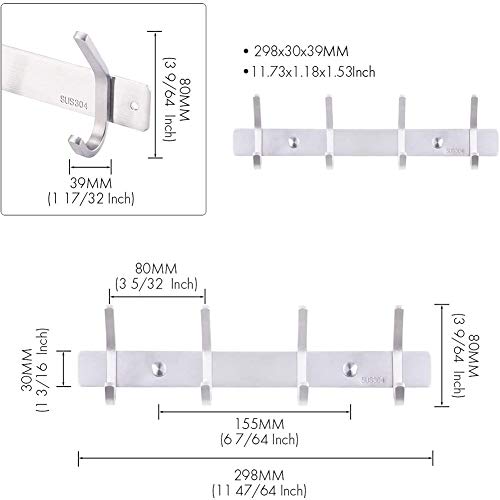 Rucoe Appendiabiti a Parete Acciaio Inossidabile-(4 Ganci)Appendiabiti a Parete, Appendi Abiti da Muro Moderni,Attaccapanni Montato da Parete Per Giacche, Cappelli, Sciarpe, Carico Fino a 35KG