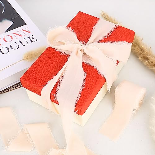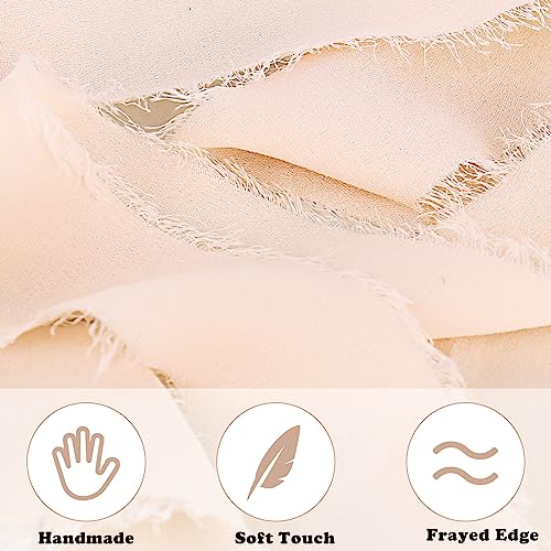 RUCUDIM 2 rotoli Nastro in chiffon di seta, 3,8 cm, Frange Fatto a Mano Nastro, Chiffon Sfrangiato, nastro chiffon rosa cipria, bordi sfilacciati per nozze, confezioni regalo, lavori fai da te