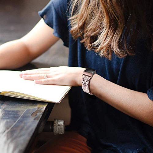 RuenTech Compatibile con Fitbit Charge 4 / Charge 3, cinturino di ricambio in metallo, da uomo e da donna, in acciaio inox (rosa)