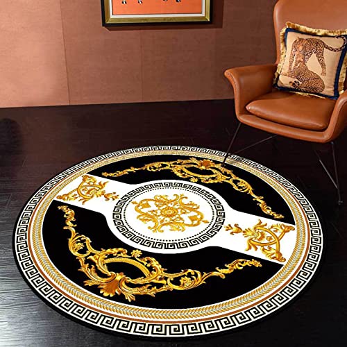 Rug-QJDDUP Rotondo Tappeto Design Pelo Corto Ingresso Casa Antiscivolo Interno Esterno, Lavabile in lavatrice,Modello oro bianco e nero, Round Diameter: 90 CM