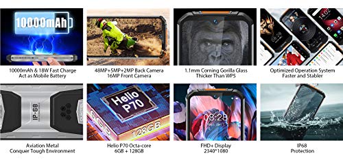 Rugged Smartphone (2020) OUKITEL WP6, Cellulare Antiurto IP68, Batteria 10000mAh (Carica Rapida), Quattro Fotocamera 48 MP, Helio P70 6GB + 128GB, FHD+ 6,3 Pollici, DUAL SIM GPS WiFi Face ID Nero