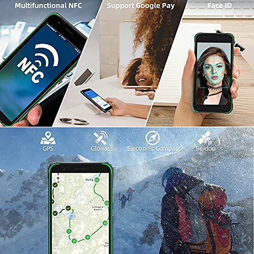 【13MP Tripla fotocamera & Face ID Sblocco & NFC】① La tripla fotocamera del Blackview BV4900Pro (13MP+5MP+2MP) dona il tuo talento fotografico.La fotocamera posteriore da 13 MP con flash scatta foto nitide anche al buio, la fotocamera frontale da 5MP ti consente di catturare selfie incredibili. ②Sblocco veloce e s