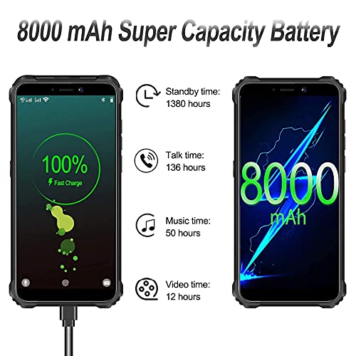 Rugged Smartphone OUKITEL WP5 Pro Android 10, Outdoor Otto-core 4+64GB Telefono Robusto, 8000mAh Batteria Impermeabile IP68 Antiurto Cellulari, 5.5" HD, 4 LED Flash, Dual Sim/GPS/OTG Nero