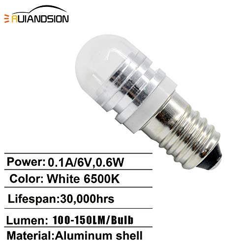 Ruiandsion 10pcs 6V E10 Base Presa LED Lampadina COB 2W LED Aggiornamento lampadina di ricambio per torce Lampadine torcia, 6500K Bianco