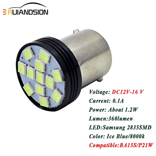 Ruiandsion - 2 lampadine a LED 1156 7506 BA15S P21W Base 2835 12SMD Chipset 12 V LED di ricambio per luci di retromarcia, colore: Blu ghiaccio