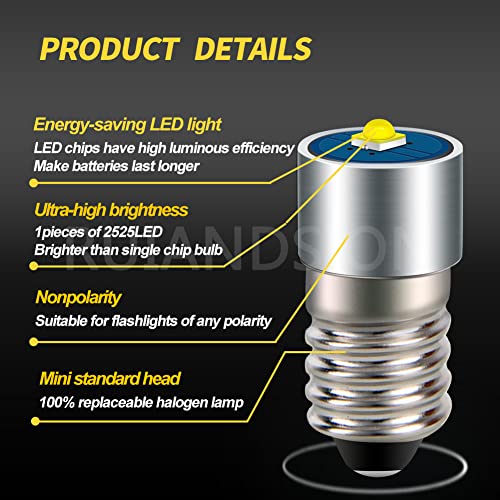 Ruiandsion - 10 lampadine a LED E10, 4,5 V, 2525 3 W, colore bianco, per fari, torce e torce