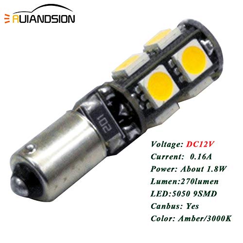 Ruiandsion - 4 lampadine LED BAY9S H21W Canbus 12V Super Bright 5050 2SMD Chipset Ambrato/Giallo LED Indicatore di Backup Lampadine di retromarcia
