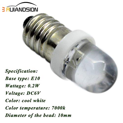 Ruiandsion 10 lampadine a LED da 6 V E10, mini lampadine a LED bianco/blu/rosso/verde/giallo con base E10 (bianco)