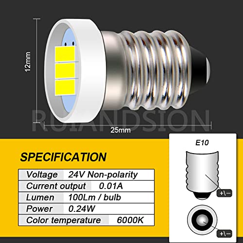 【Ampia applicazione】E10 base 24 volt non polarità LED lampadina sostituzione di luci interne, torce, torce, luci di lavoro, ecc. Si prega di verificare il modello di base della lampadina prima dell'acquisto.