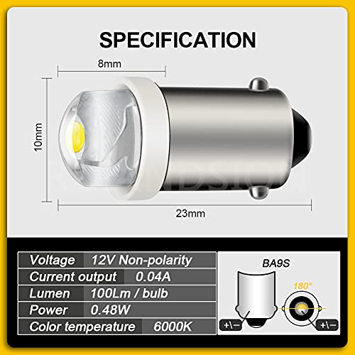 Ruiandsion 2 pezzi BA9S Lampadine a LED 0,5 W 12V Bianco COB 1SMD LED Luci per interni auto Luci di cupola