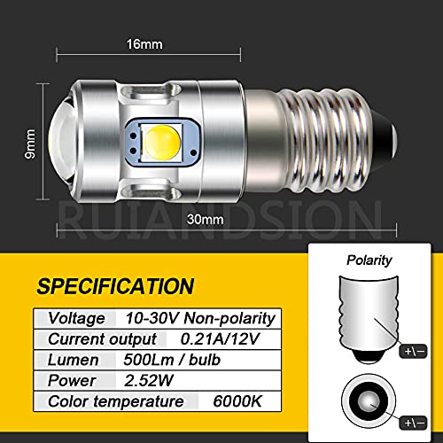 【Ampia applicazione】 E10 3030 4SMD 10-30 V lampadina LED non polarità sostituzione di luci interne, bici, torce, luci di lavoro, ecc. Si prega di verificare il modello di base della lampadina prima dell'acquisto.