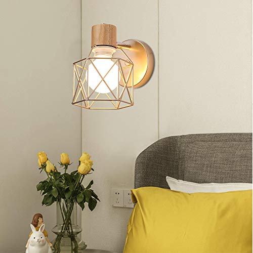RUIBO Moderna applique da parete a gabbia in metallo dorato Decora la fattoria Camera da letto Comodino Soggiorno Lettura Applique da parete industriale Lampada da parete AC90-220V Luce bianca E27