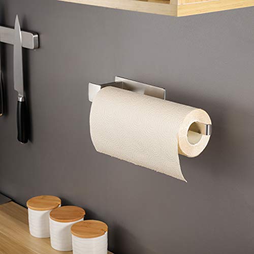 Design moderno: Design quadrato con braccio aperto, l'estremità del supporto con una curvatura adeguata, facile da montare, cambiare e tirare il rotolo da cucina senza cadere, assolutamente adatto per rotoli di carta da cucina secondo gli standard europei.