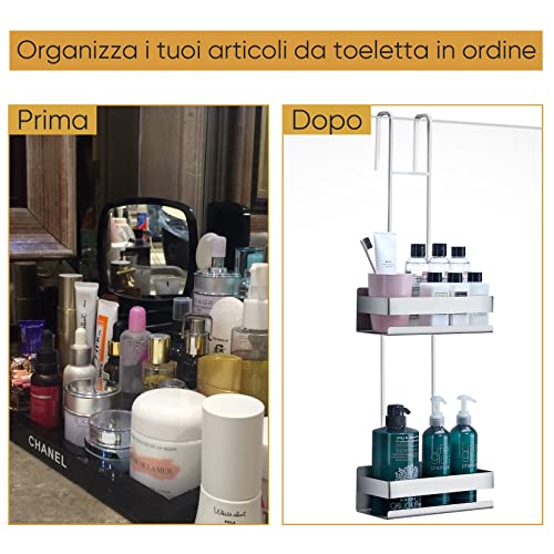 RUICER Mensola Doccia - Portaoggetti Doccia da Appendere Mensole Bagno con 2 Ripiani, Acciaio Inox