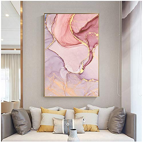 RuiChuangKeJi Quadro su Tela Astratto Moderno Che scorre Oro Decorativo Nordic Immagine da Parete per Soggiorno Rosa Viola Stampa Poster 50x70cm Senza Cornice X3