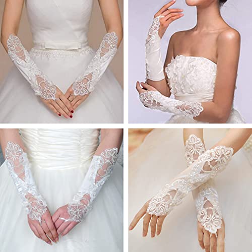 RuiChy 1 Paio Pizzo Raso Paillettes Sposa Guanti senza Dita, Elegante Guanti da Donna per Nozze Partito Banchetto Ballo di Fine Anno Ballo Danzante Costume d'opera (Bianco), Taglia unica