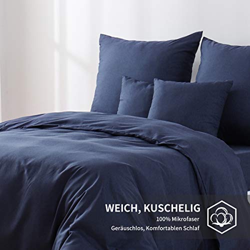 Ruikasi, biancheria da letto in panno di microfibra 200 x 220 cm + 2 x 80 x 80 cm Dunkelblau