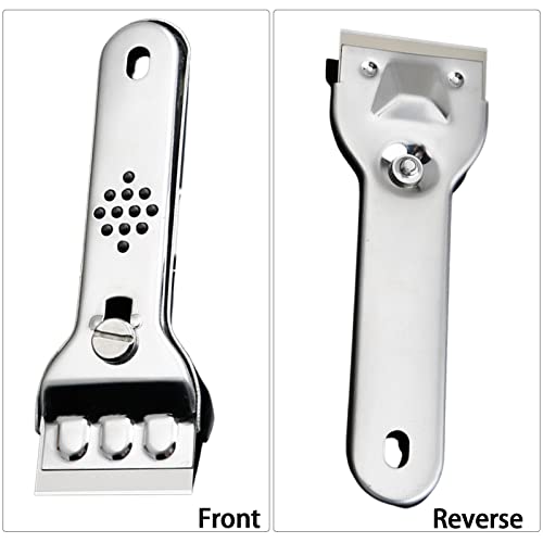 Acciaio inossidabile: il raschietto per la pulizia è realizzato in acciaio inossidabile con lame sostituibili. La struttura resistente rende difficile la deformazione o la rottura. I raschietti possono servire a lungo.