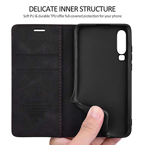 RuiPower Cover per Huawei P30 Pelle Custodia per Huawei P30 Portafoglio Flip Caso con TPU Antiurto Supporto Stand Magnetica Cover per Huawei P30 - Nero