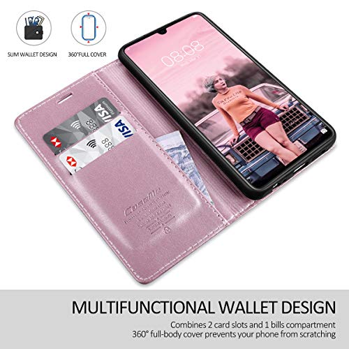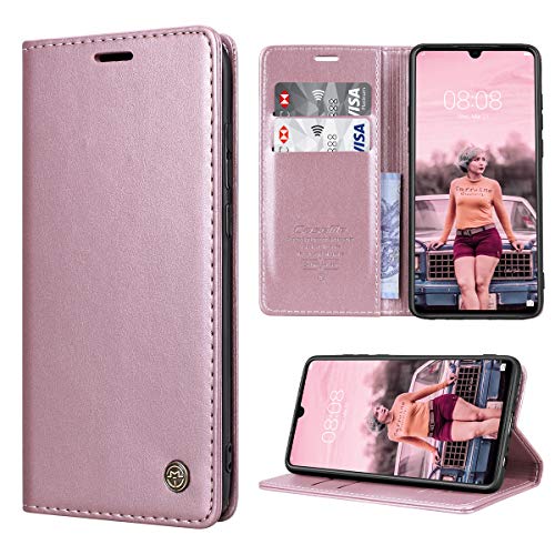 RuiPower Cover per Huawei P30 Pelle Custodia per Huawei P30 Portafoglio Flip Caso con TPU Antiurto Supporto Stand Magnetica Cover per Huawei P30 - Oro Rosa